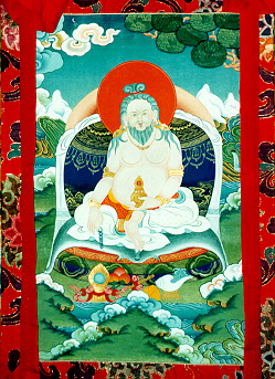 The picture at the top of this page is a traditional portrait of Thang-tong Gyalpo (pronounced "Tangdong Gyalpo"), who lived from 1385 to 1509.